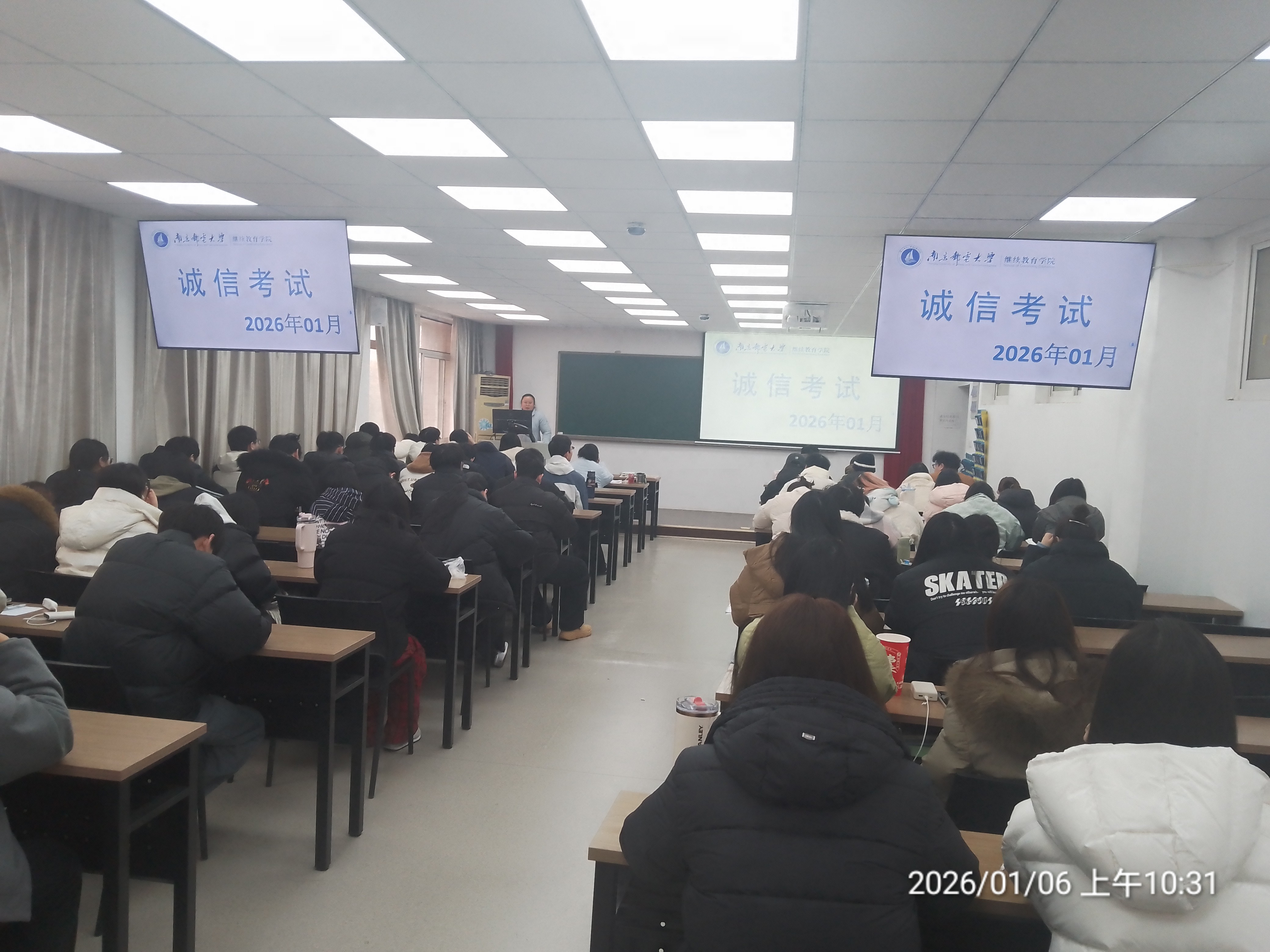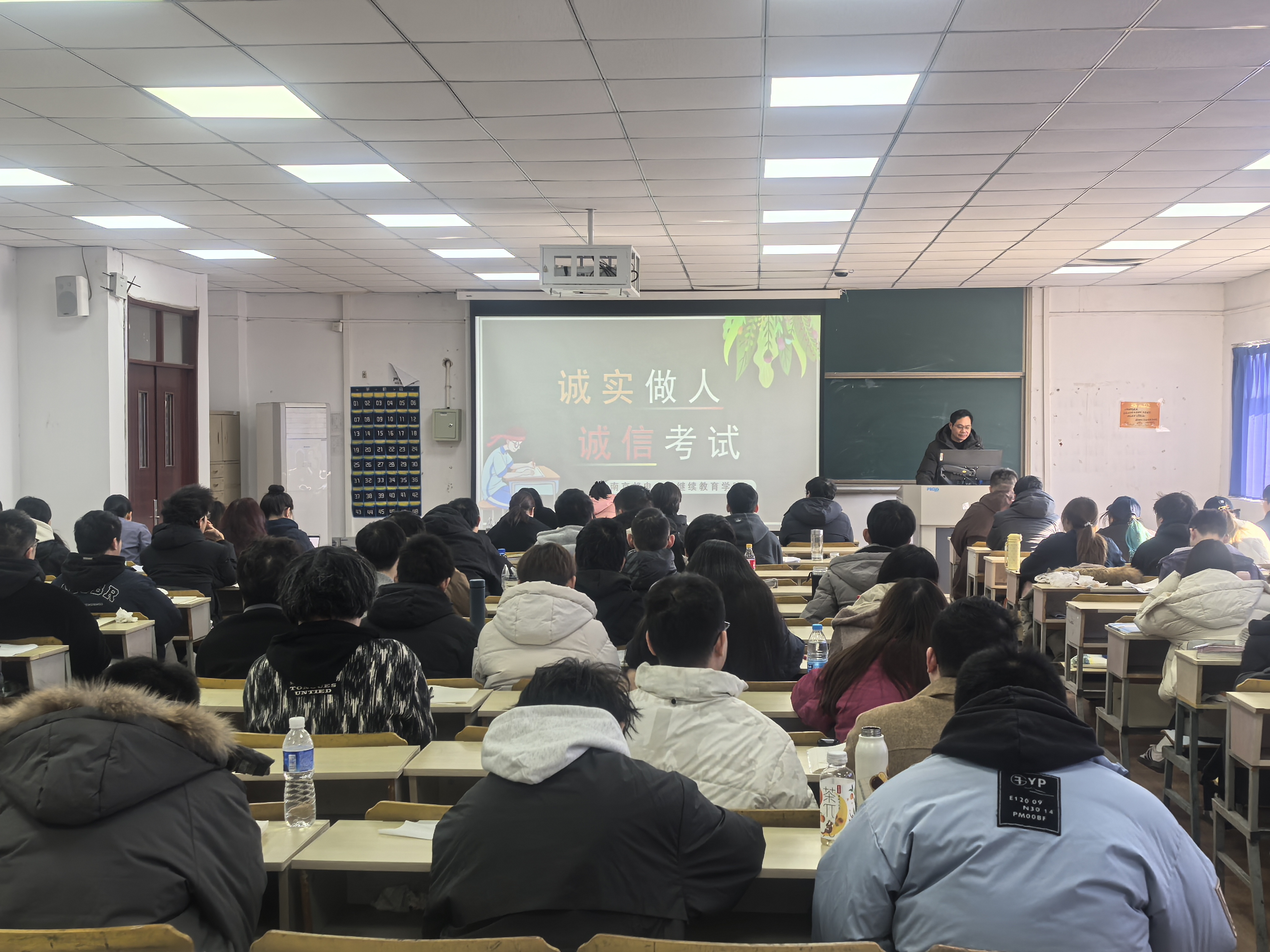 为严肃考风考纪,推进学风建设,近日我院学生管理部全体老师及各位班主任在锁金村校区和仙林校区面向自考助学在校生开展诚信考试教育活动。老师们以“诚实做人诚信考试”为主题,为同学们详细解读考试规则,告知违规后果,引导大家树立正确的考试观,努力复习,诚信迎考。