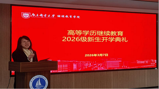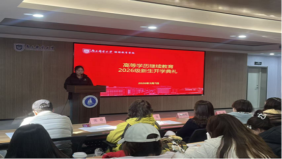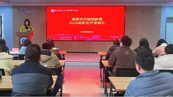 春回大地,万象更新。2026年3月7日下午,南京邮电大学继续教育学院在锁金村校区教学楼300教室隆重举行2026级高等学历继续教育直属教学点(校本部)新生开学典礼。学院院长高翔、教师代表张奇、继教管理科科长赵梓竹、函授管理部主任韦伟、2026级新生班主任张帆老师及直属教学点(校本部)新生参加了开学典礼。开学典礼由函授管理部副主任杨宏伟老师主持。