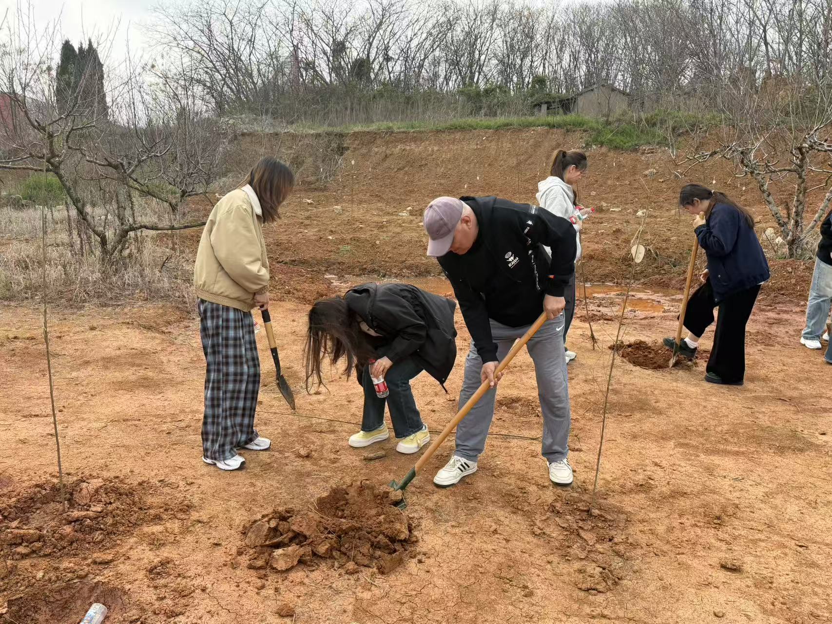 抵达园区栽种点,同学们在工作人员的引导下,迅速投入植树行动。大家分工协作,挥锹挖坑、扶苗培土。大家满怀热情,栽下了希望的树苗,不仅体现了同学们对未来的憧憬与期待,也提升了团结协作的意识,增进了彼此的了解,进一步加深了同学们对践行“绿水青山就是金山银山”生态文明理念的理解。
